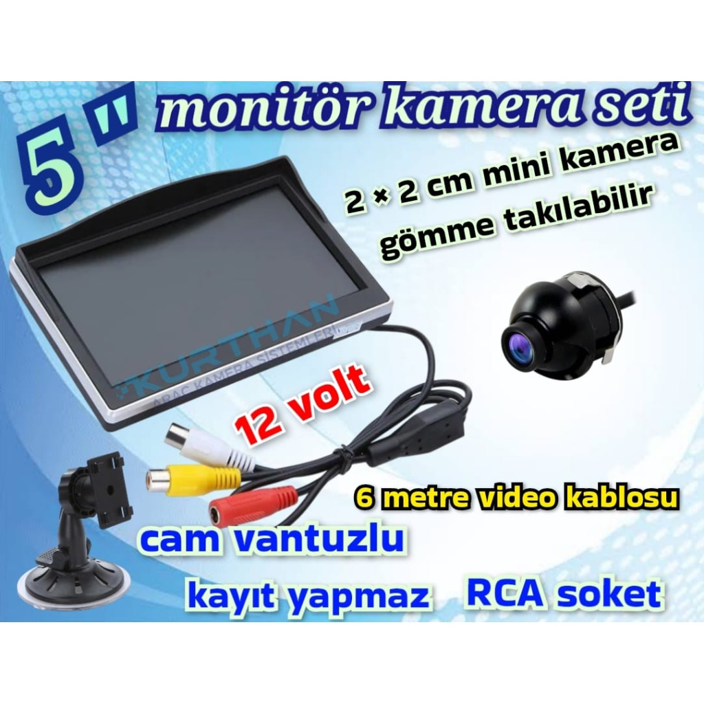 1 ADET 19 MM. MİNİ KAMERA VE 5 İNÇ MONİTÖR KAYIT YAPMAZ 12 VOLT