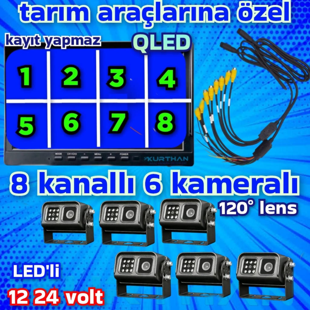 8 KANALLI 10” HYBRİD MONİTÖR 12-24 V (KAYITSIZ) 6 ADET METAL KASA LEDLİ KAMERA