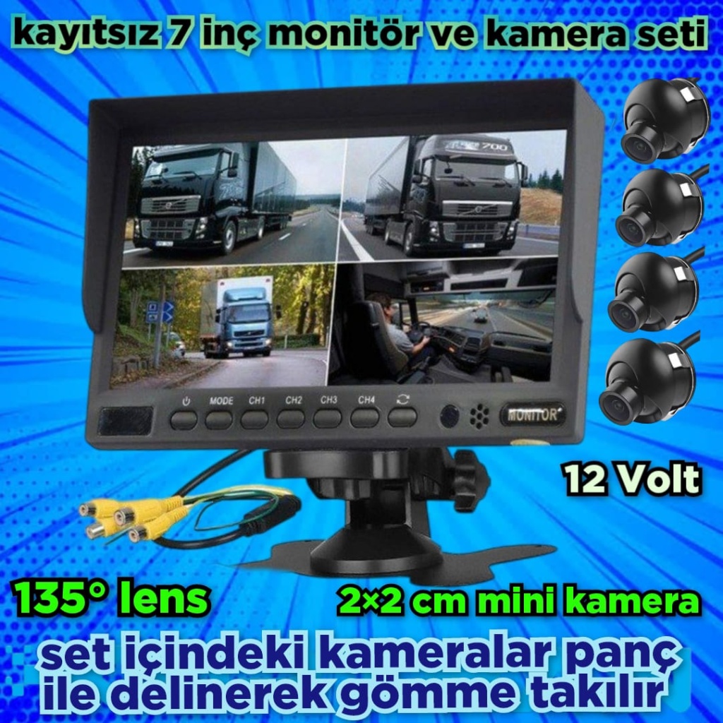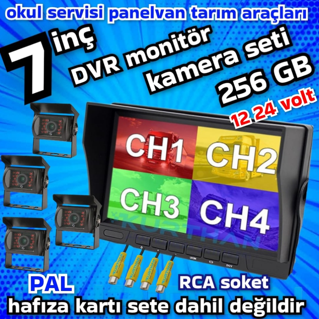 4 ADET METAL KASA LEDLİ KAMERA 7 İNÇ QLED IPS DVR MONİTÖR 12*24 VOLT 256 GB