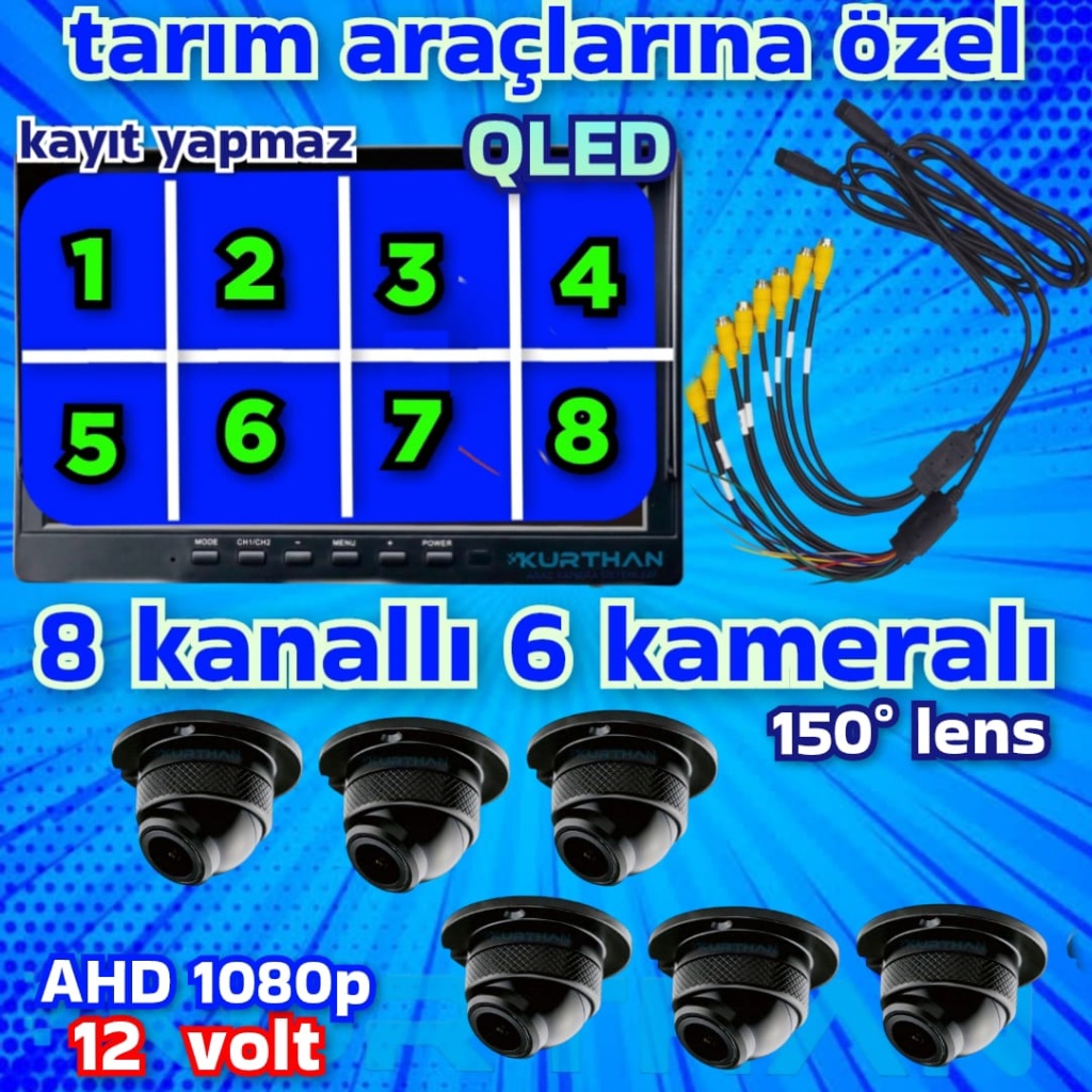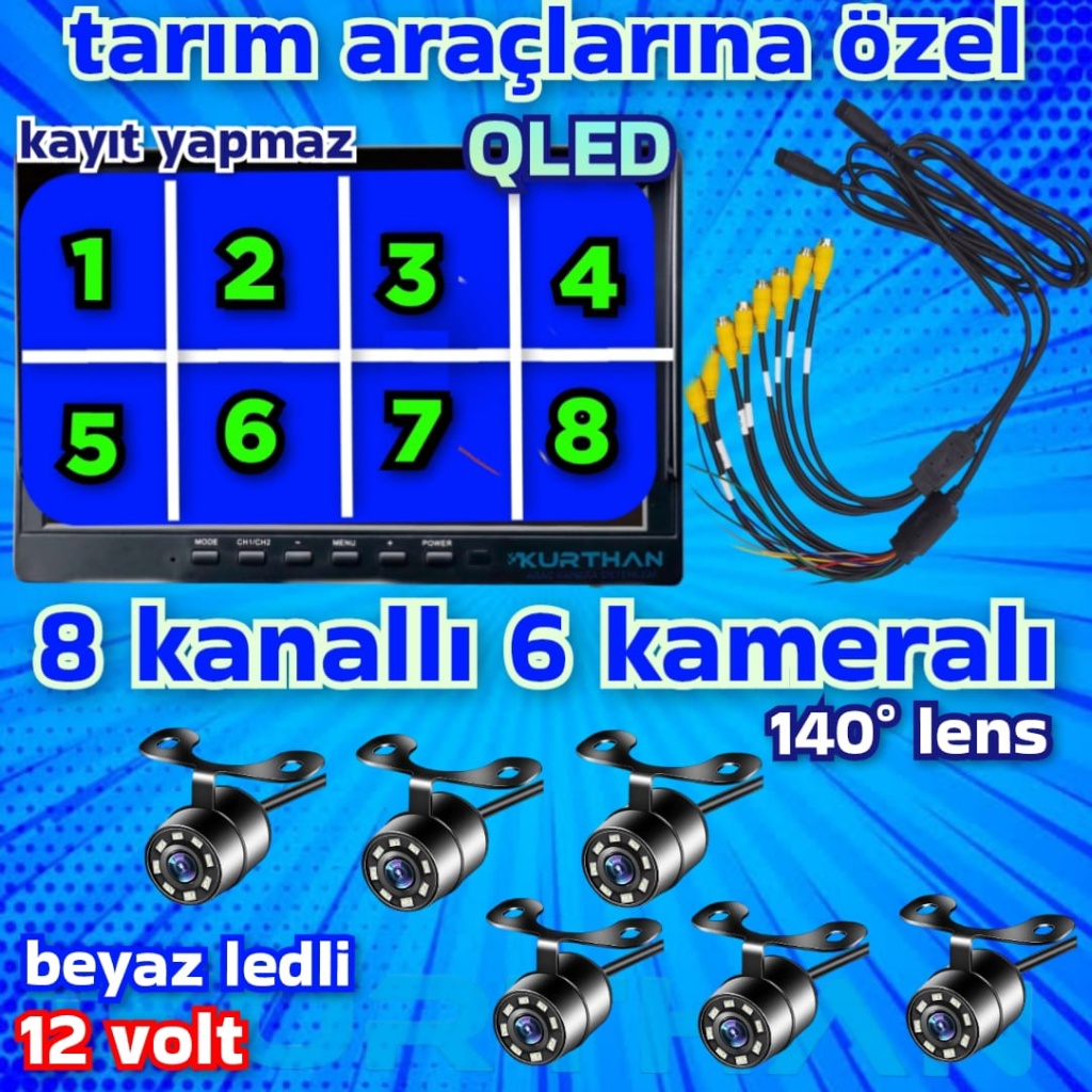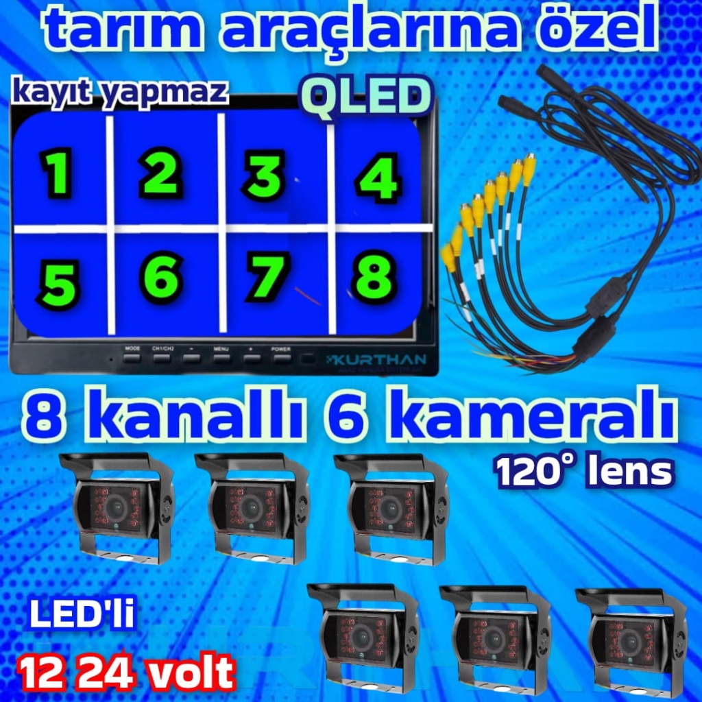 6 ADET LEDLİ KASA KAMERA VE 8 KANALLI QLED MONİTÖR 12-24 V KAYIT YAPMAZ