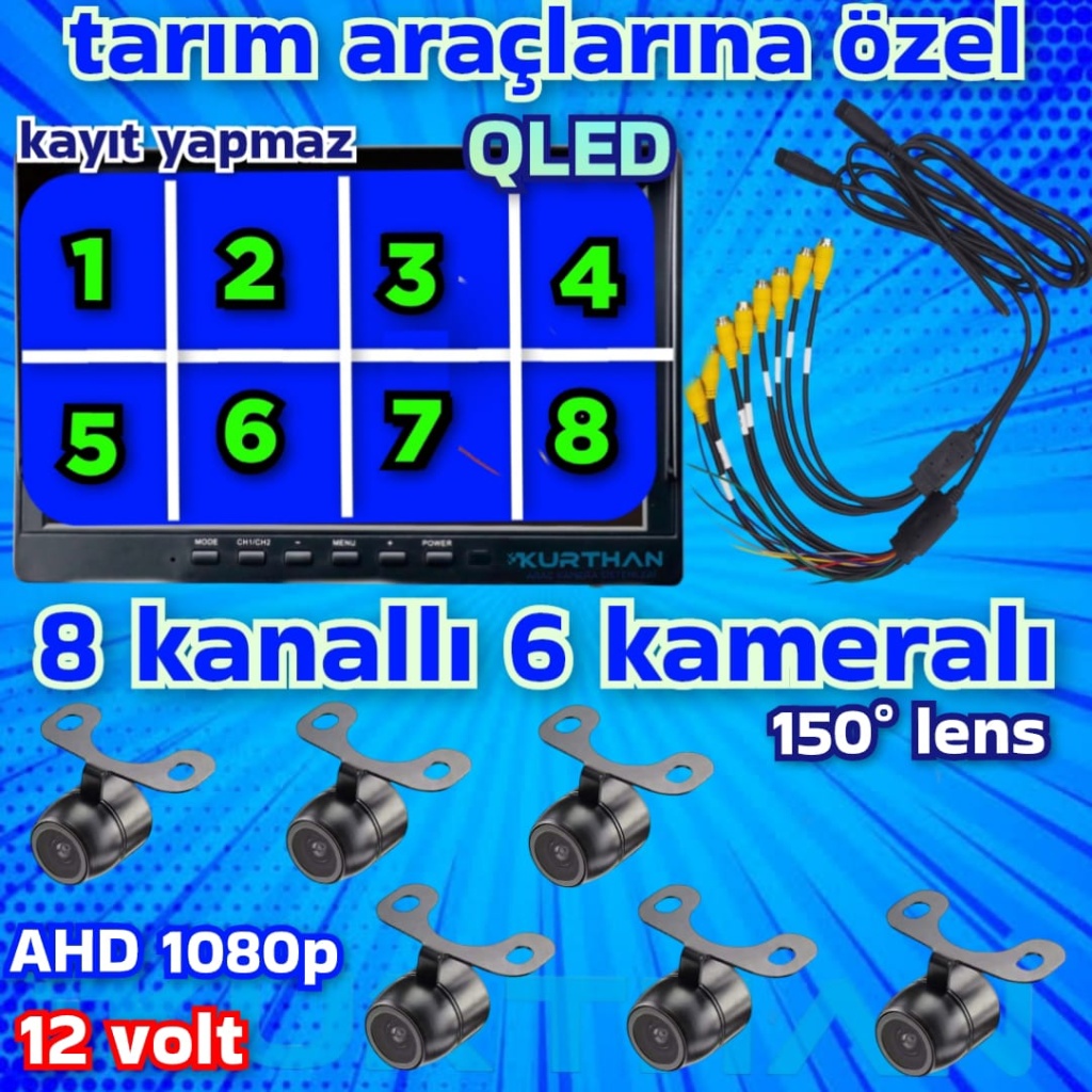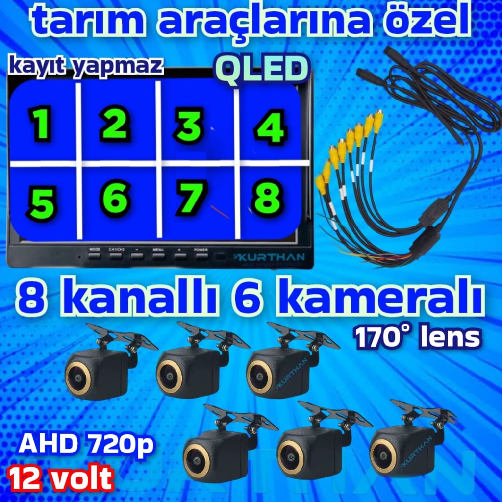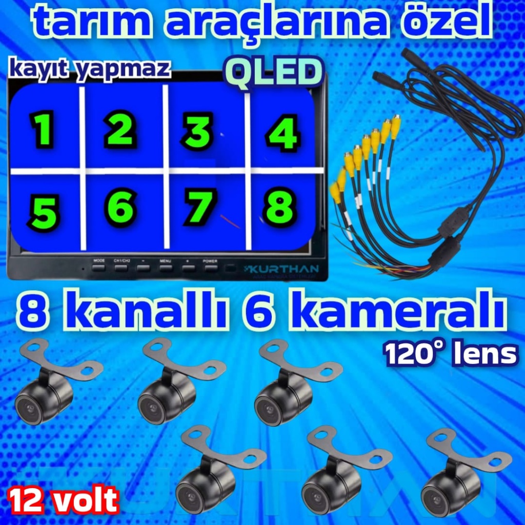 6 ADET LEDLİ KASA KAMERA VE 8 KANALLI QLED MONİTÖR 12-24 V KAYIT YAPMAZ