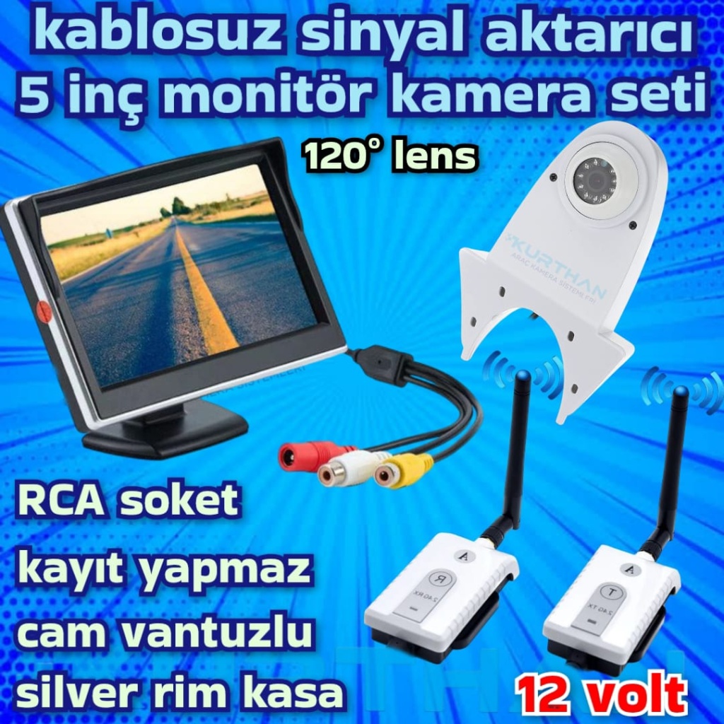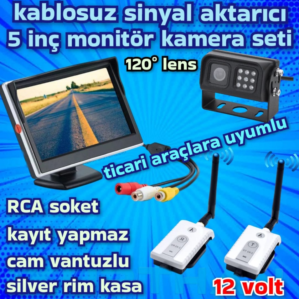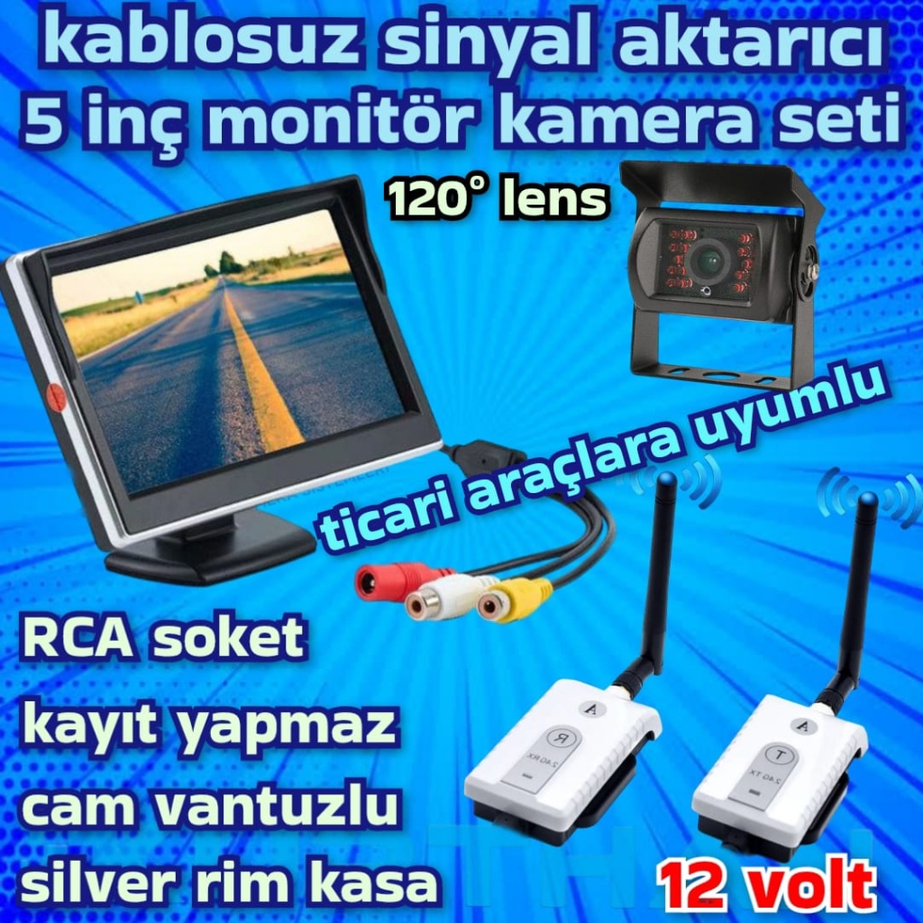TİCARİ ARAÇLARA KABLOSUZ LEDLİ KAMERA 5 İNÇ EKRAN 12 VOLT KAYIT YAPMAZ