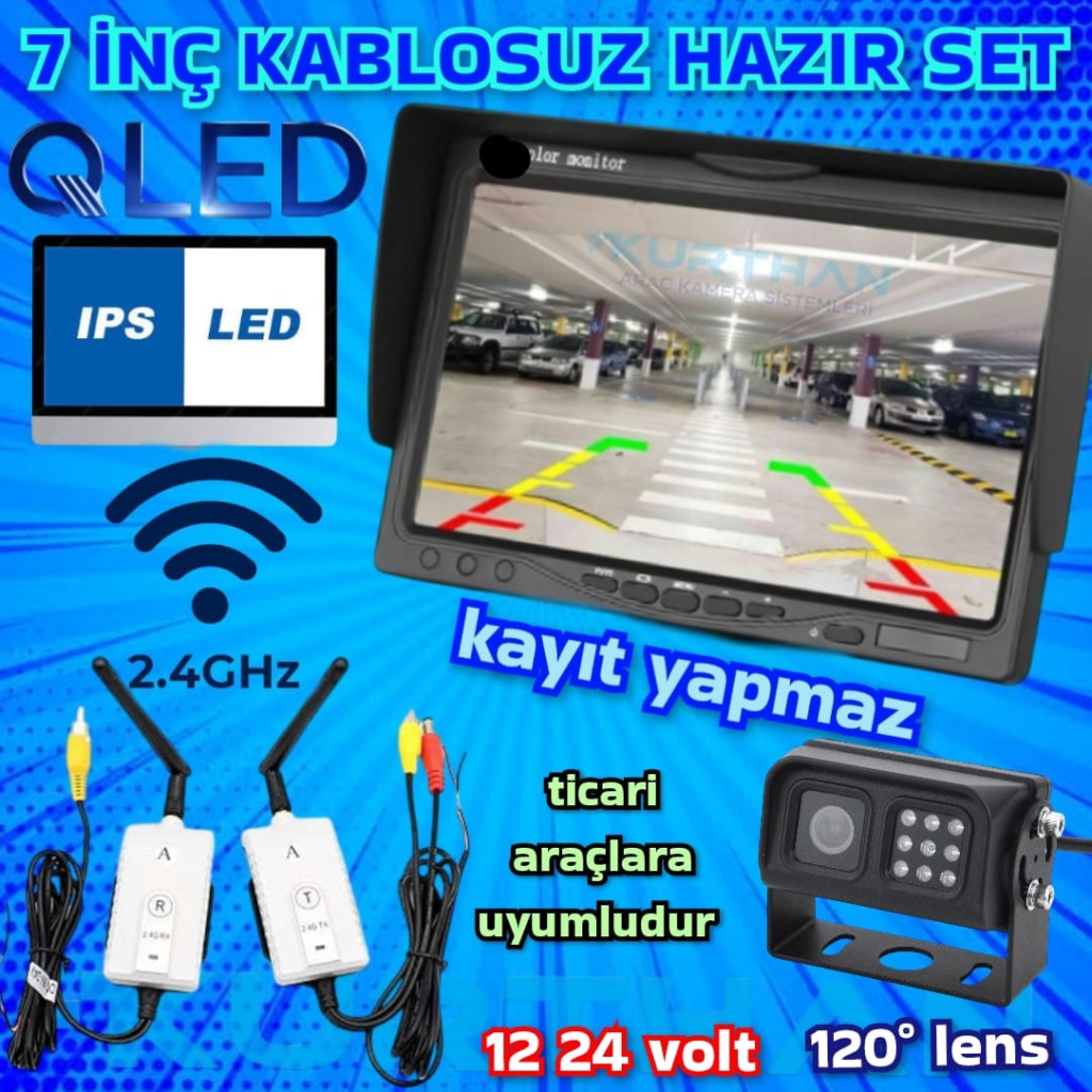 KABLOSUZ 7 İNÇ MONİTÖR METAL KASA KAMERA SET KAYIT YAPMAZ 12*24 V