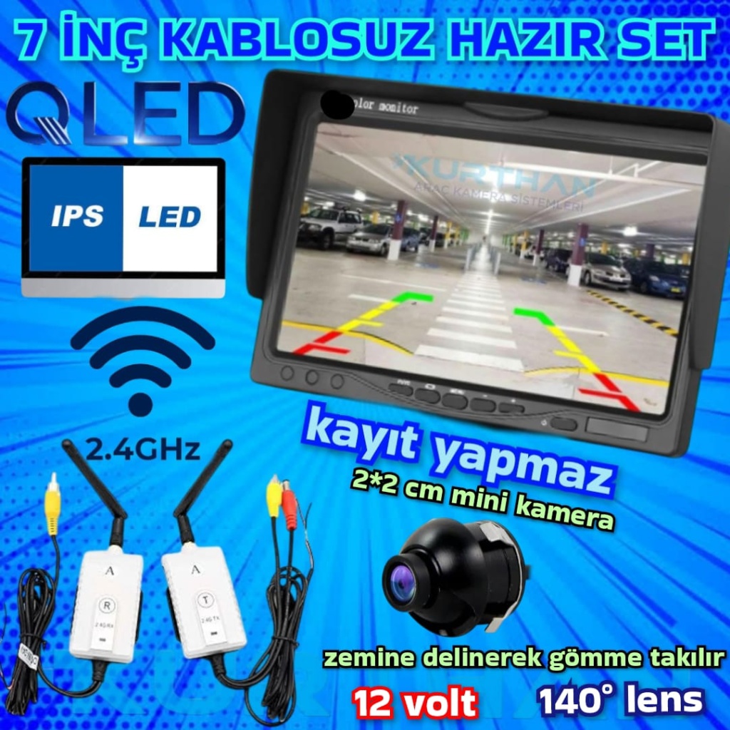 KABLOSUZ 7 İNÇ MONİTÖR 19 MM ULTRA MİNİ ARAÇ GÖRÜŞ KAMERASI 12 V KAYIT YAPMAZ