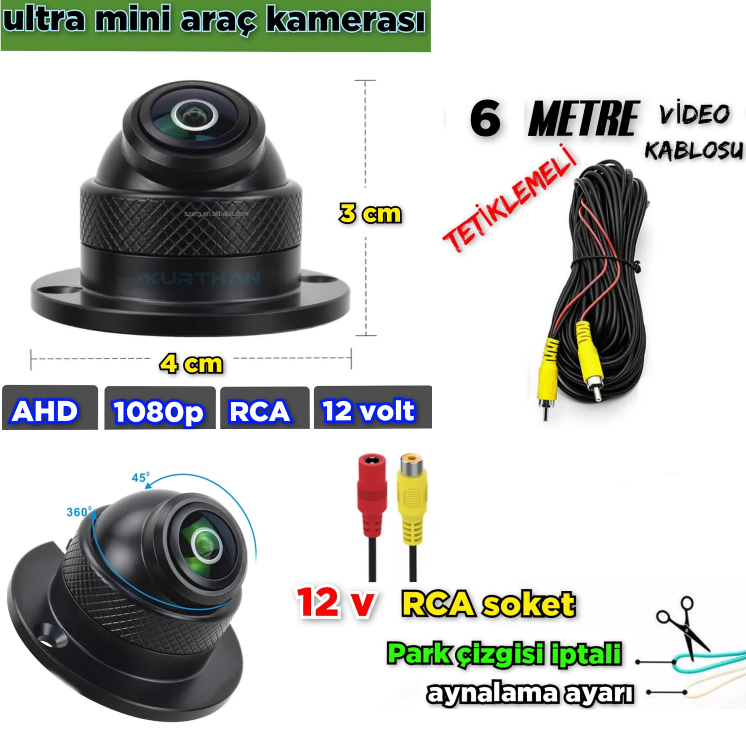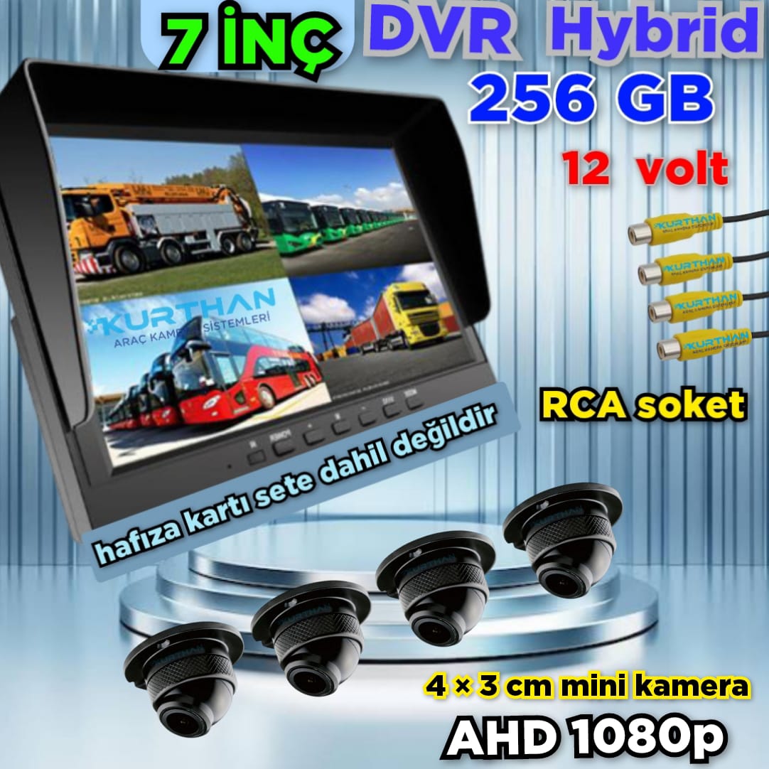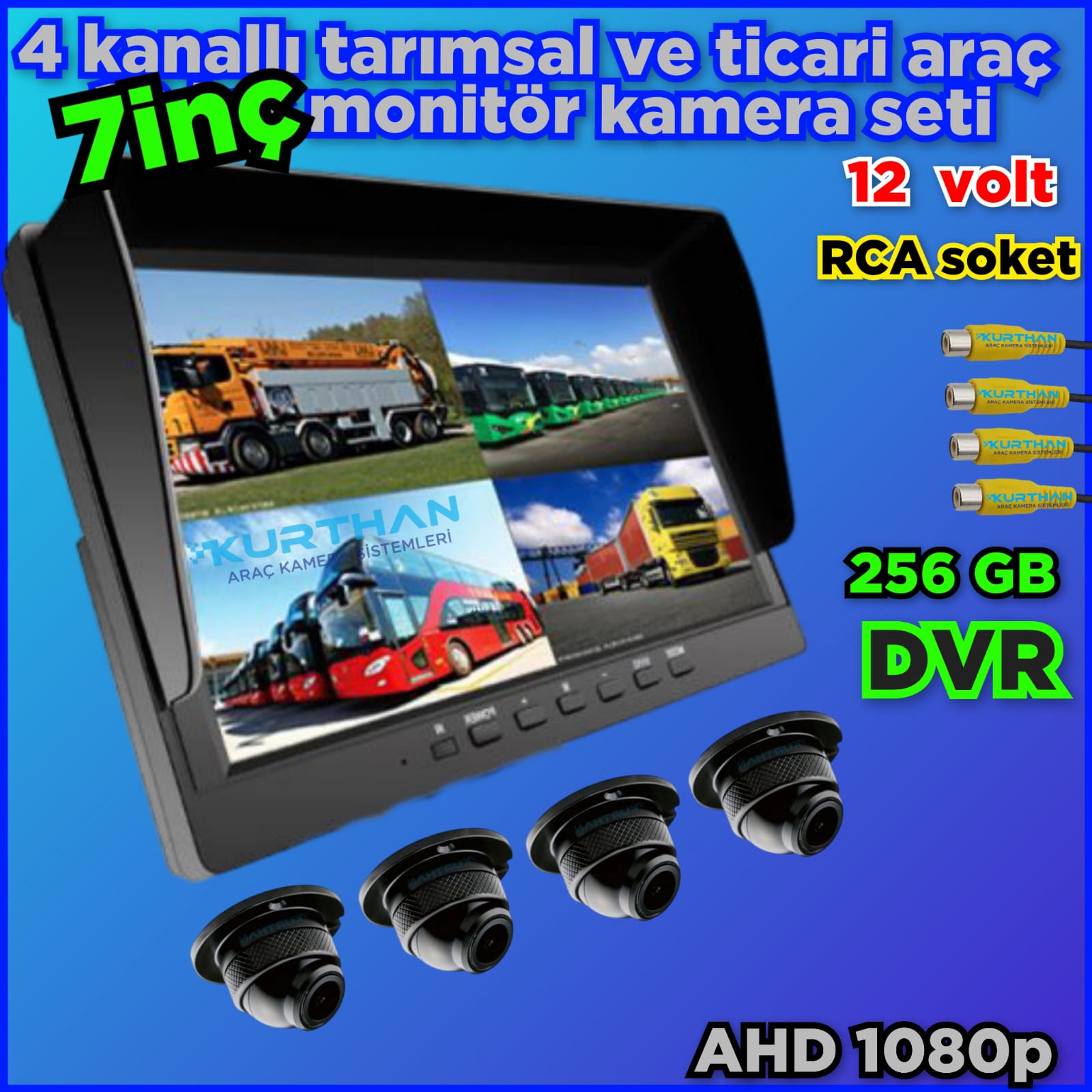 4 ADET 150 DERECE ULTRA MİNİ AHD 1080P METAL KASA KAMERA 7 İNÇ DVR MONİTÖR SETİ 12 VOLT 256 GB