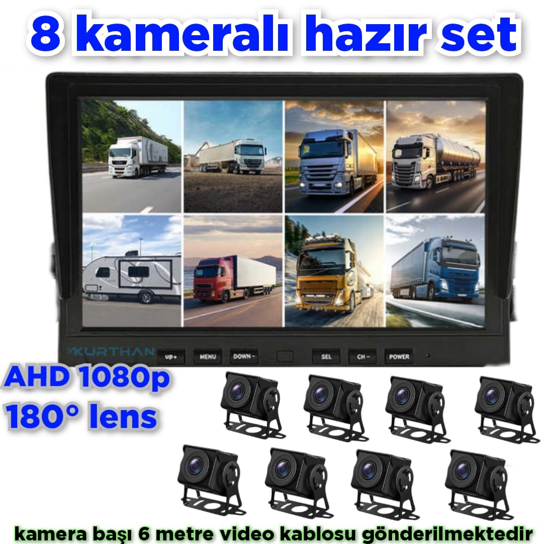 8 KANALLI MONİTÖR VE 8 ADET 1080 P AHD 180 DERECE BALIK GÖZÜ KAMERA SETİ 12 V